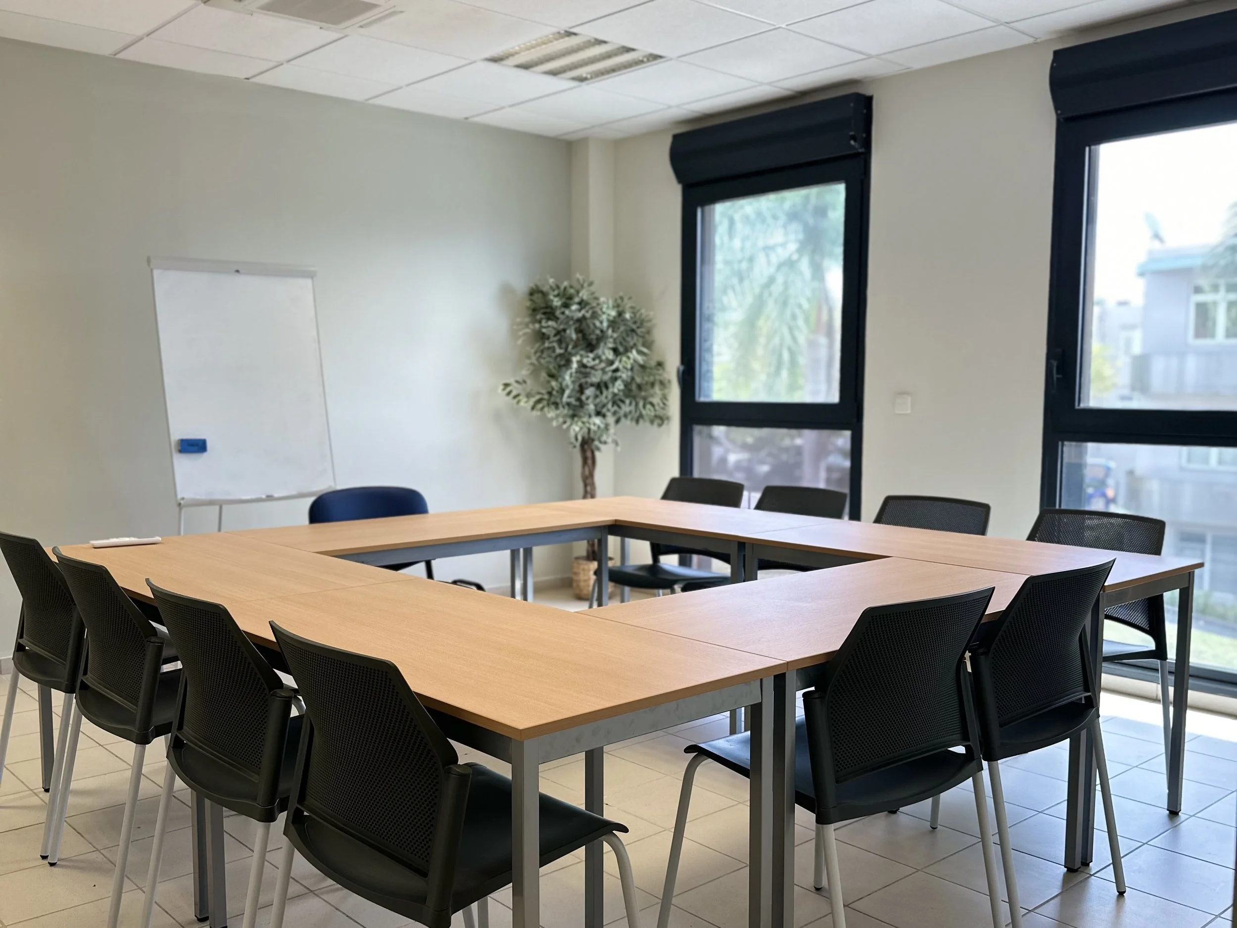 Nos salles, à la fois confortables et lumineuses, peuvent accueillir jusqu’à 15 personnes pour des réunions et des formations, et jusqu’à 28 personnes pour des conférences, garantissant ainsi un espace adapté à vos besoins spécifiques.